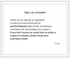Note: If you did not receive the verification e-mail, please check your Spam / Junk folder. If it’s not there, please contact our Customer Care team at support@SpinifexIT.Zendesk.com so they can manually send the verification link to your e-mail.